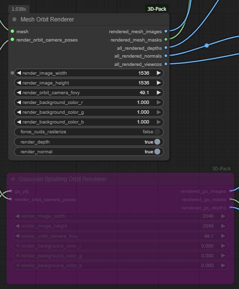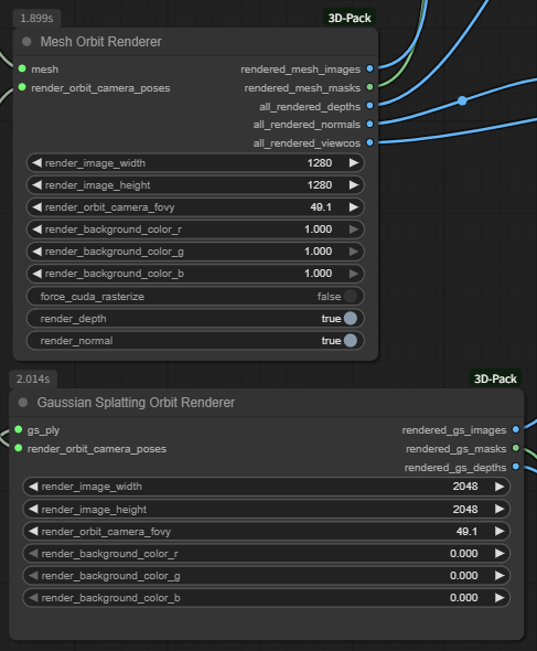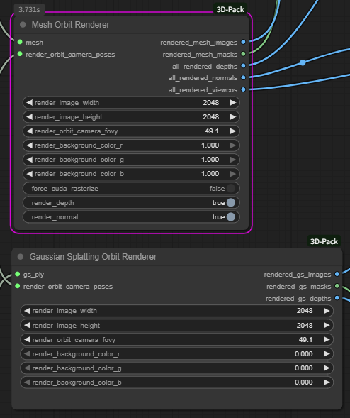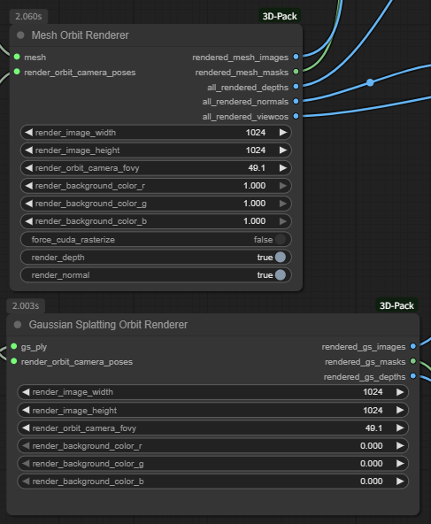 実行したところ、Mesh Orbit Rendererが2秒くらいかかっていて、Gaussian Splatting Orbit Rendererも2秒くらいかかっていました。