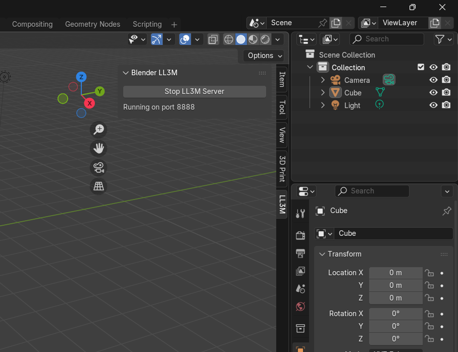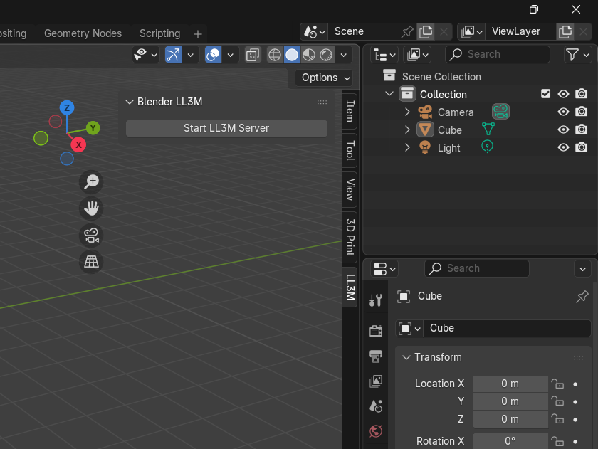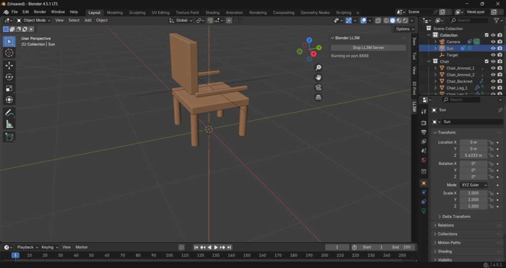 LL3Mを使用してテキストからBlender上でモデルを自動作成できました。