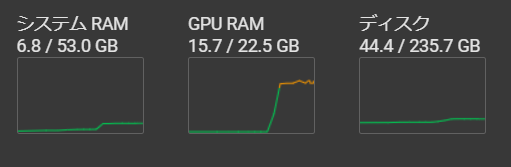 この状態で実行したら、GPU RAMは15.7GB使用していました。